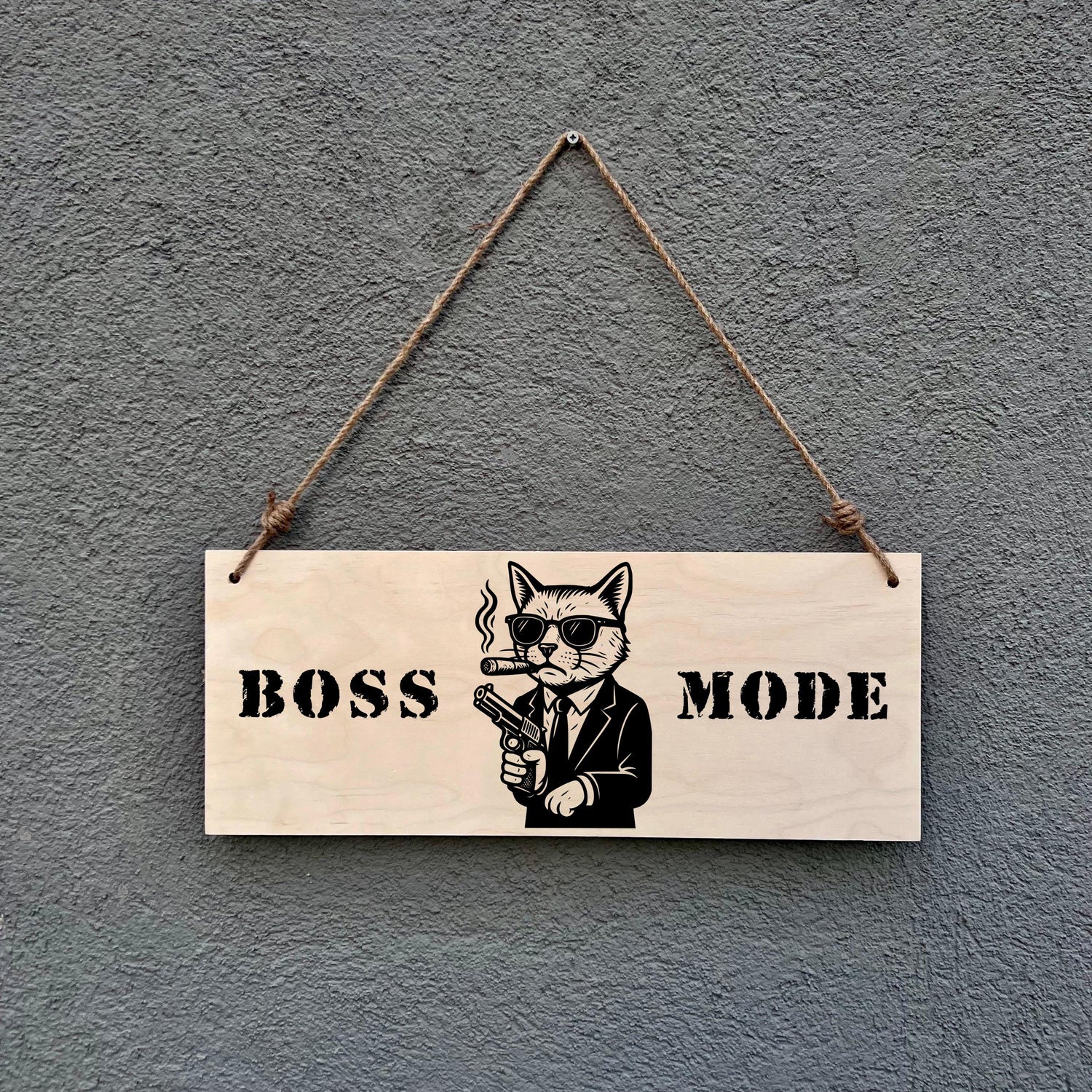 Define your territory with our handcrafted "Boss Mode" Wooden Sign. Featuring a bold, tuxedo-clad cat with undeniable attitude, this piece is the perfect blend of edgy humor and artisanal quality.